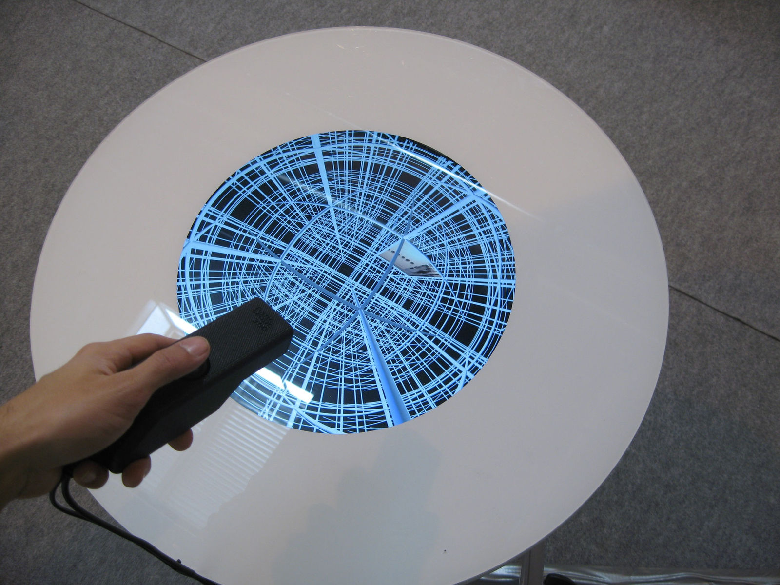 Courchesne décrit le Panoscope 360° (2000) comme un simulateur existenciel immersif; il a inventé ce système de projection panoramique monocanal afin de permettre à des visiteurs d’explorer eux-mêmes les mondes 3D qu’il imagine. L’immersion visuelle est ici obtenue par la deformation anamorphique des vues qui se redressent une fois projetées d’en haut sur un dome inversé au sein duquel prend pace le visiteur. Ces images anamorphiques sont analogues à celles qui sont présentées sous forme de diques rotatifs dans le Journal panoscopique.
